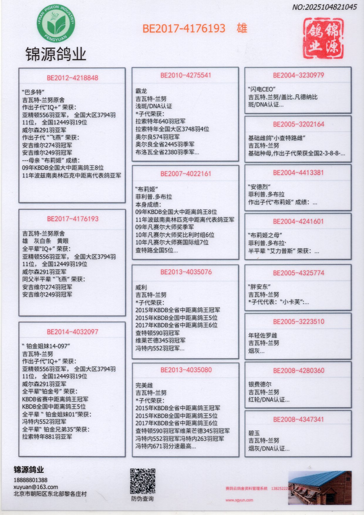 - 当前查看拍卖鸽:吉瓦特-兰努原舍-“巴多特”X“ 铂金姐