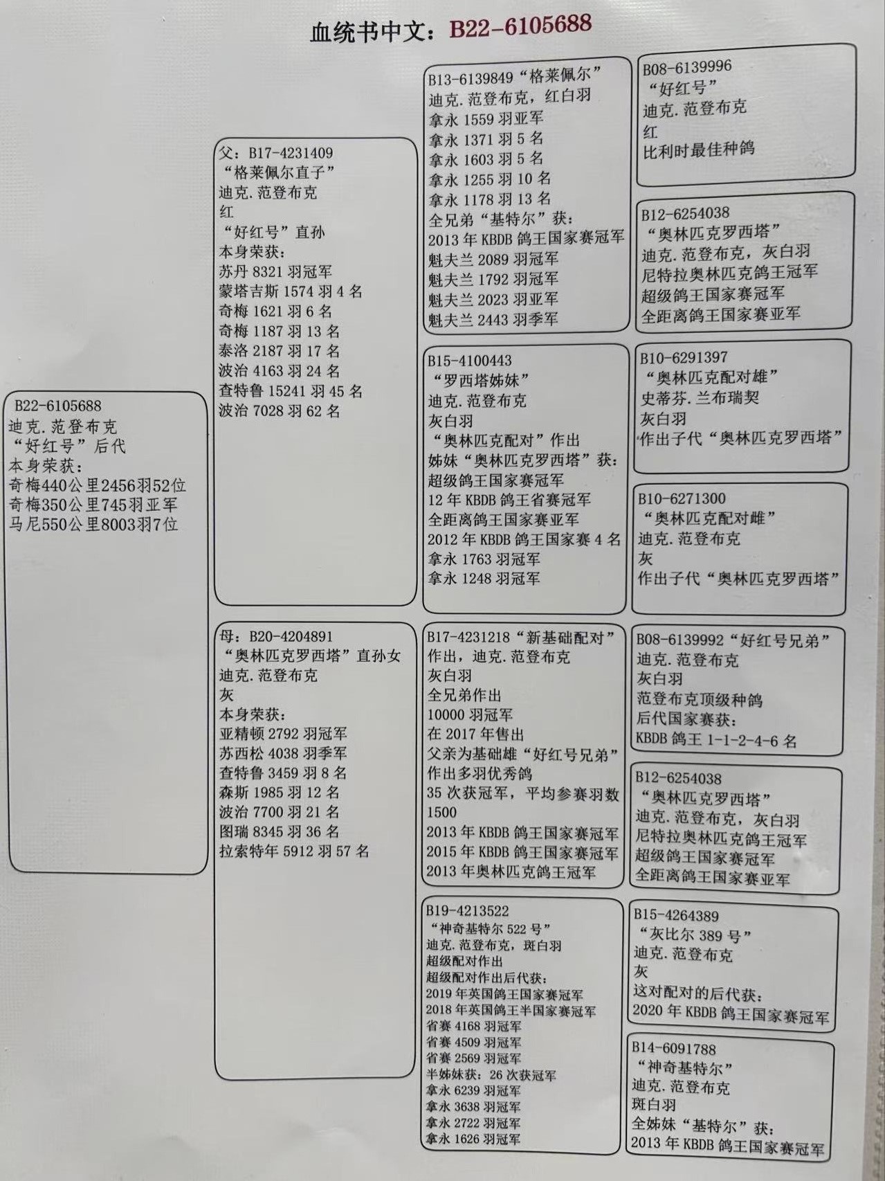 - 当前查看拍卖鸽:迪克.范登布克 “好红号”后代