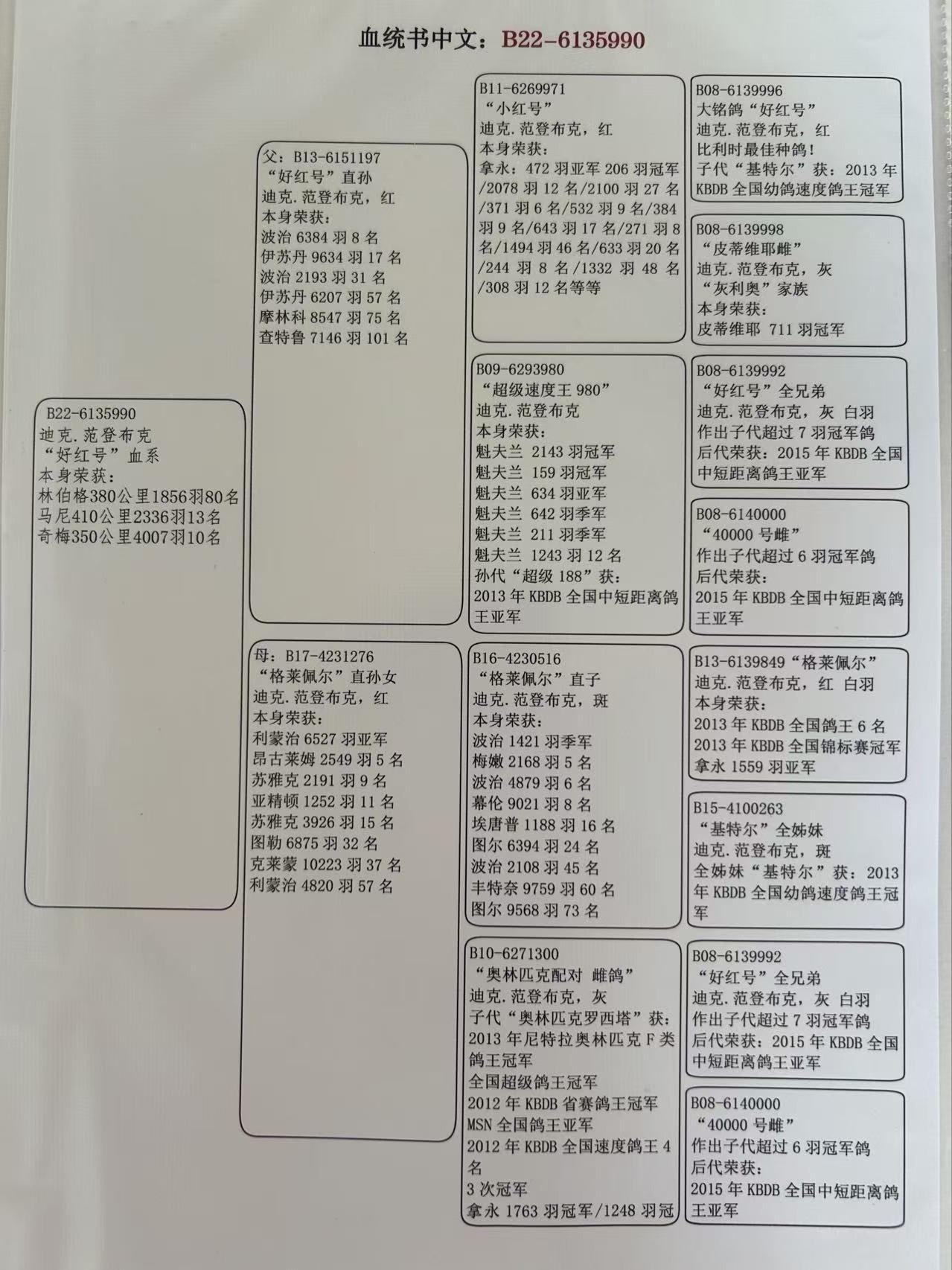 - 当前查看拍卖鸽:迪克.范登布克“好红号”血系