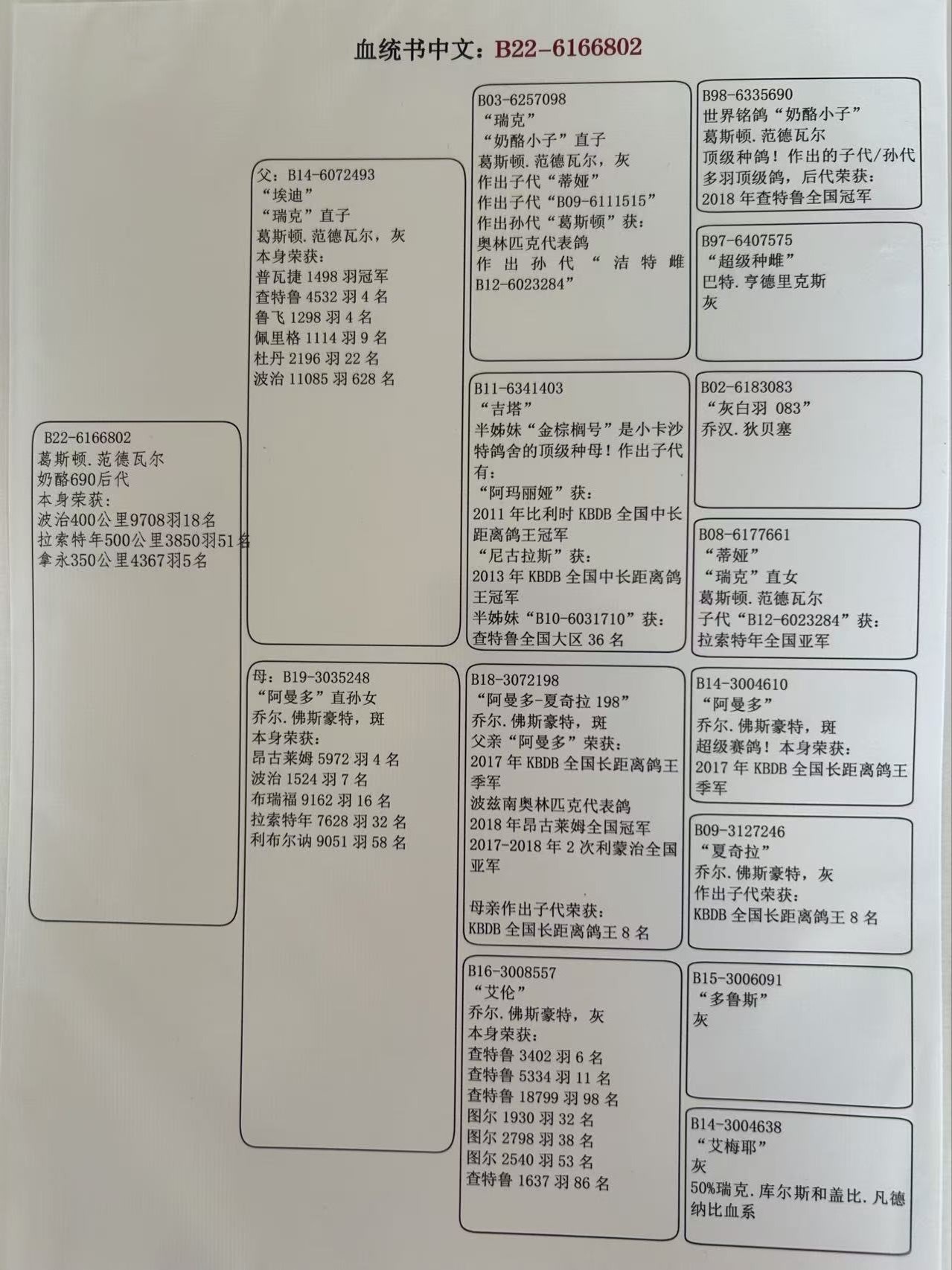 - 当前查看拍卖鸽:葛思顿.范德瓦尔 奶酪690后代