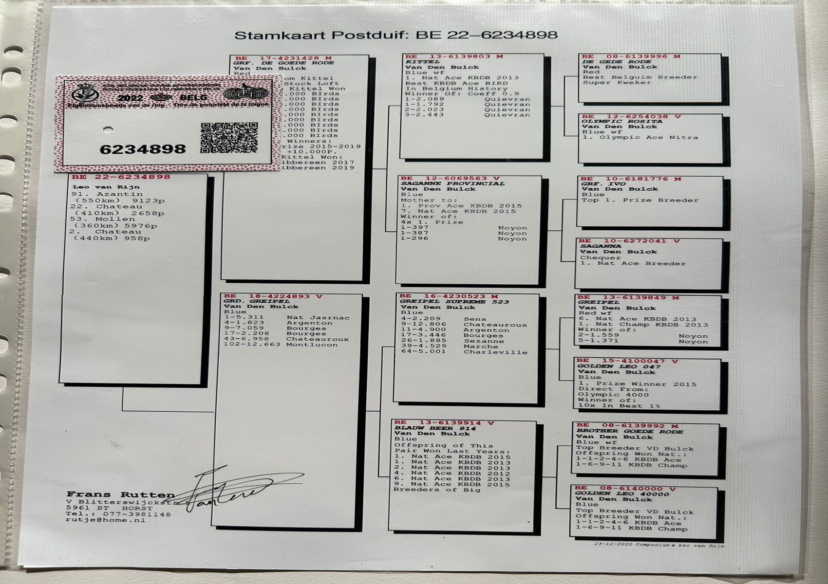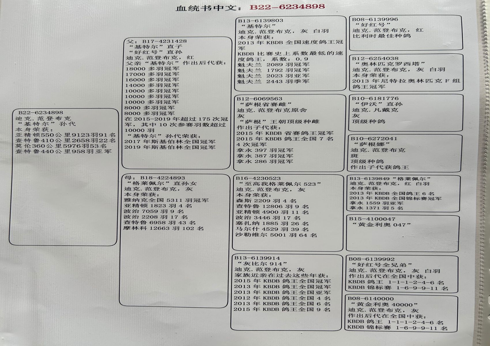 - 当前查看拍卖鸽:迪克.范登布克 “基特尔”孙代
