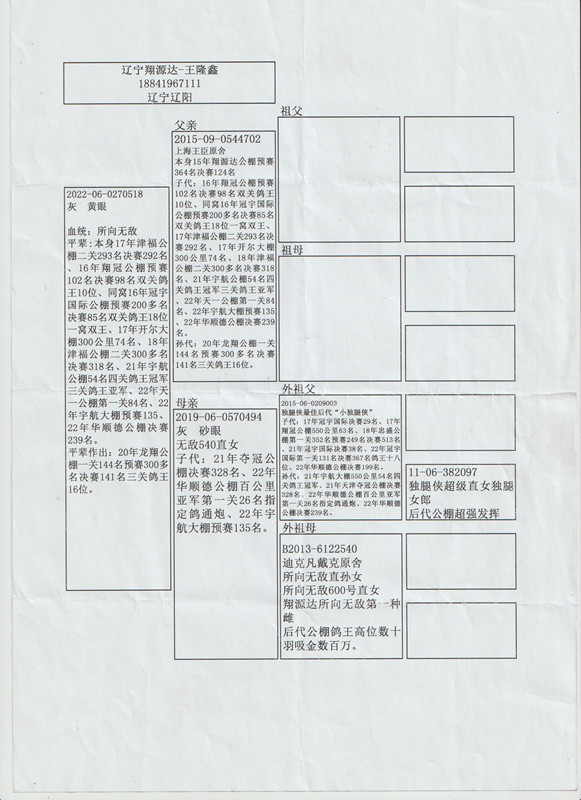 3、注明:请注意看种鸽和血统图片,有的种鸽环卡丢失,有些奖鸽无环卡和奖状和血统,介意请勿出价;