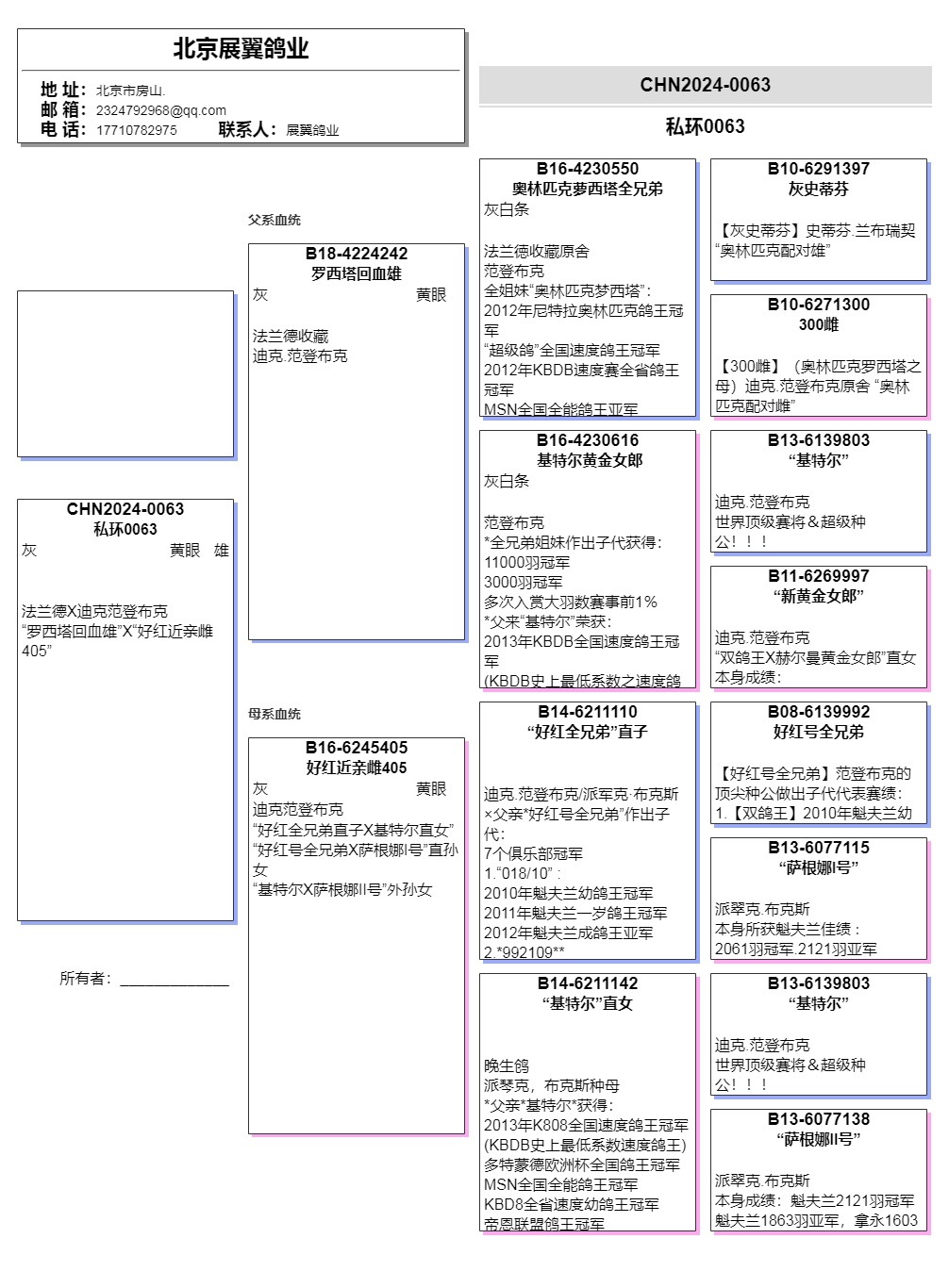 - 当前查看拍卖鸽:范登布克罗西塔X好红0063