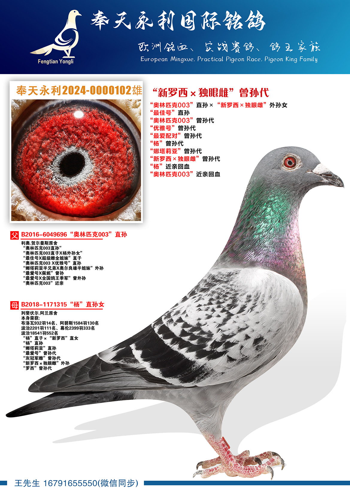 “最爱号X全国鸽王季军”曾外孙