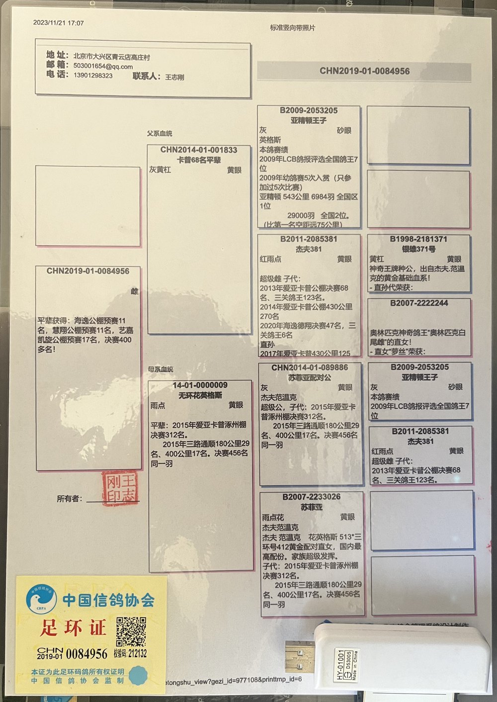 - 当前查看拍卖鸽:王志刚---英格斯956 雌