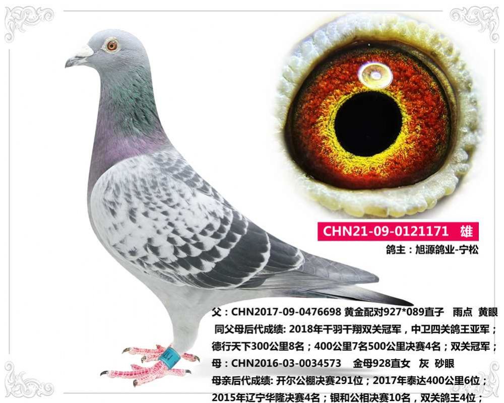 父:CHN2017-09-0476698 黄金配对927*089直子 雨点 黄眼 同父母后代成绩: 2018年干羽干翔双关冠军,中卫四关鸽王亚军;德行天下300公里8名;400公里7名500公里决赛4名;双关冠军;后代鸽王前十超10羽以上