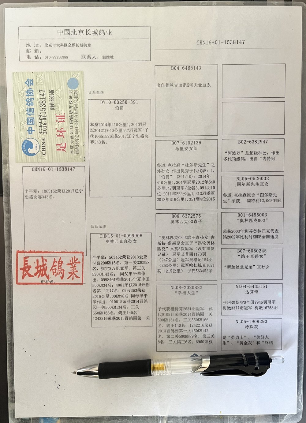 鸽主:中国北京长城鸽业