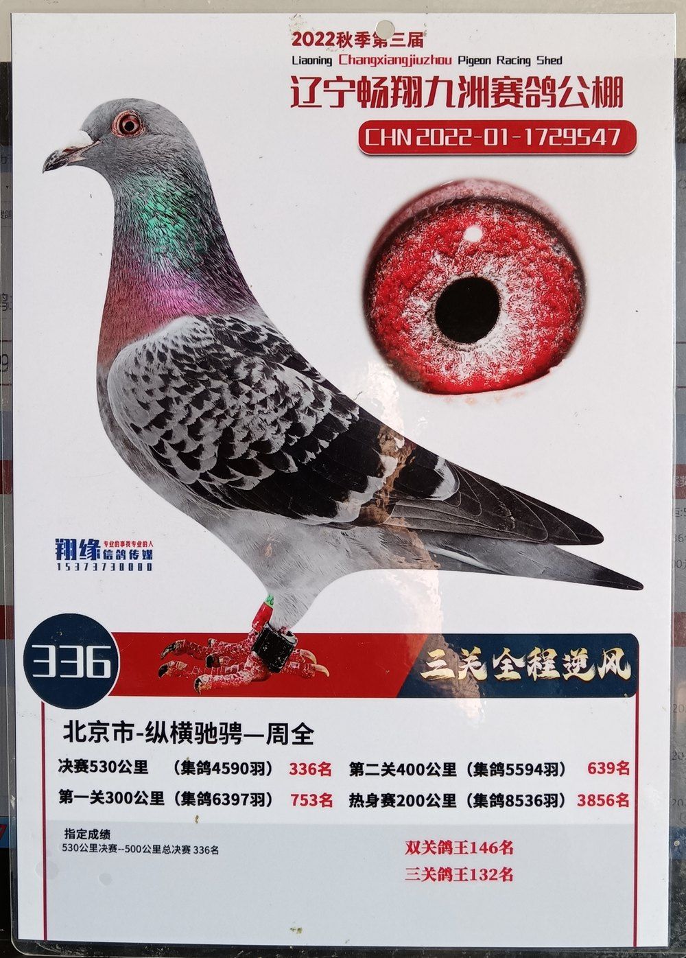 辽宁畅翔九洲赛鸽公棚三关鸽王132名;