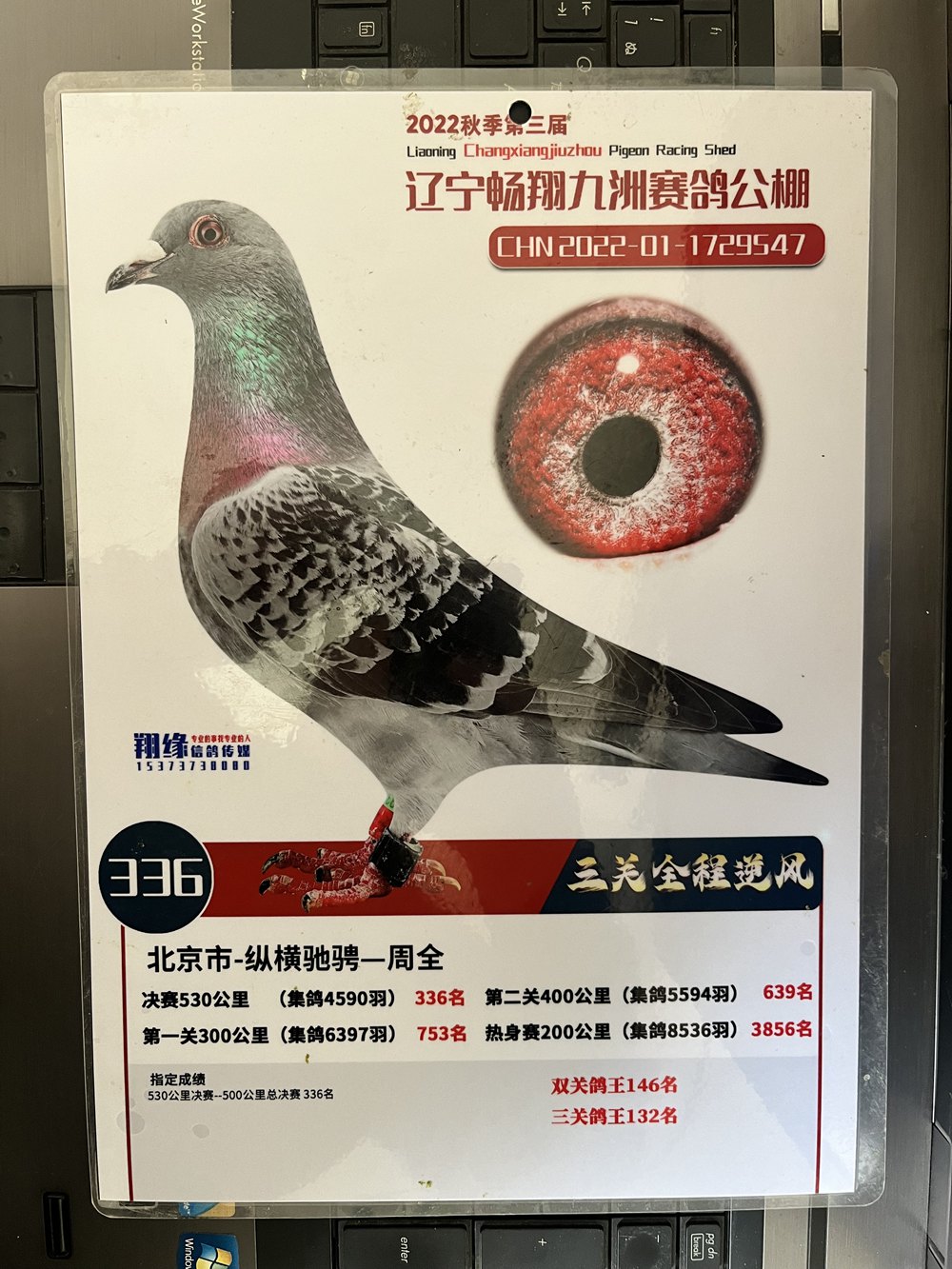辽宁畅翔九洲赛鸽公棚530公里决赛336名;