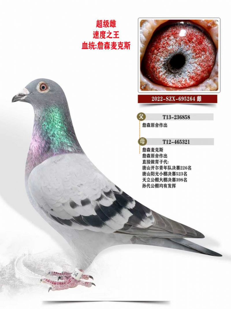 超级雌速度之王2022-SZX-695264血统:詹森麦克斯父亲:T13-236858詹森原舍作出母亲:T12-465321詹森麦克斯詹森原舍作出直接做育子代:唐山开尔青年队决赛226名唐山阳光小棚决赛523名天立公棚大棚决赛398名孙代公棚均有发挥