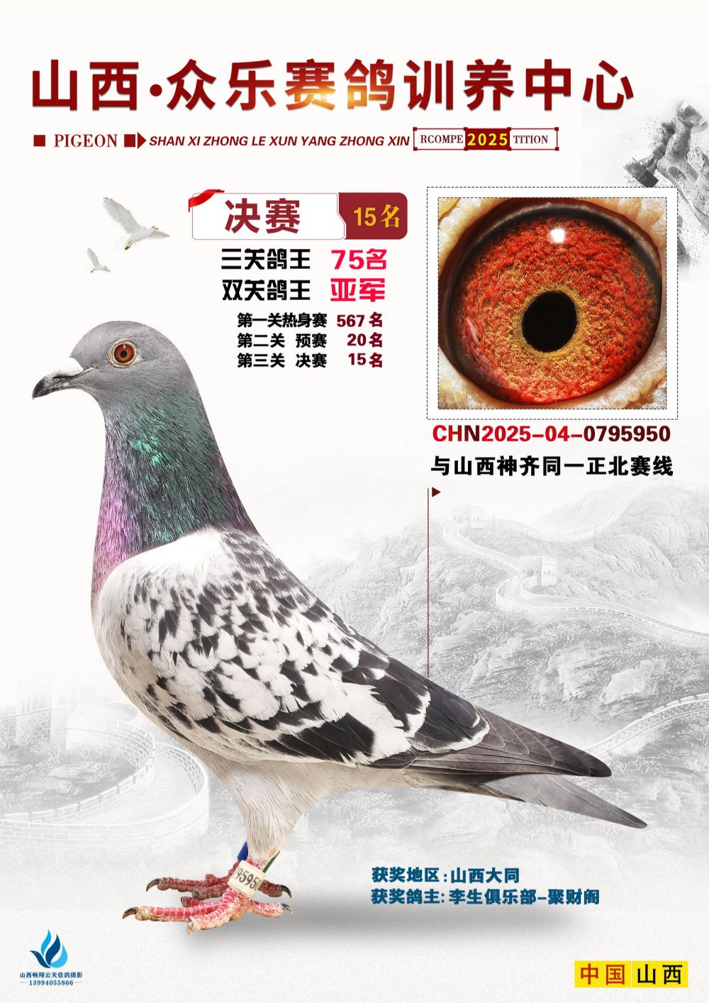 - 当前查看拍卖鸽:山西众乐双关鸽王亚军