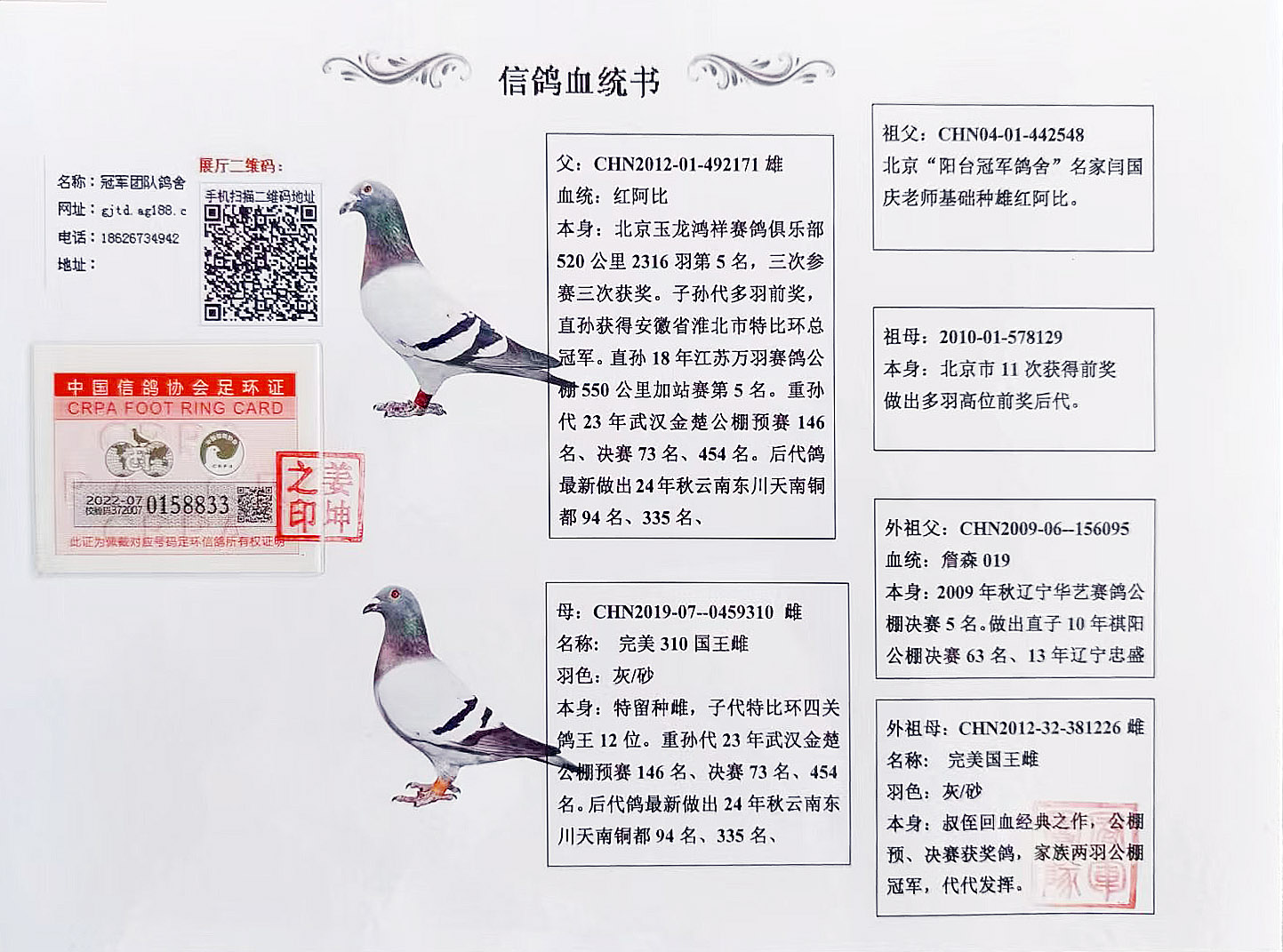 空间有限0元分享,假一赔百,拒卖百家鸽。机不可失。成绩、血统永久保真。血统书足环卡随鸽发出。