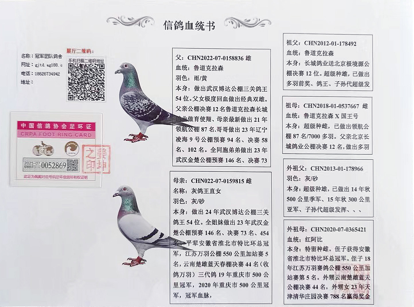 血统书足环卡随鸽发出,低价位高品质幼鸽,种赛皆宜。良心做人,所有成绩血统假一赔百,不做虚假宣传!当暧赘氪菩塾啥嗄昃楹屯雅卸辖龉┎慰迹�