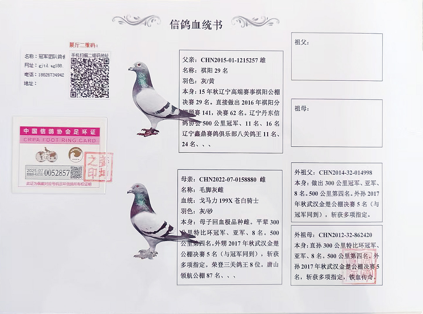 血统书足环卡随鸽发出,低价位高品质幼鸽,种赛皆宜。良心做人,所有成绩血统假一赔百,不做虚假宣传!当暧赘氪菩塾啥嗄昃楹屯雅卸辖龉┎慰迹�