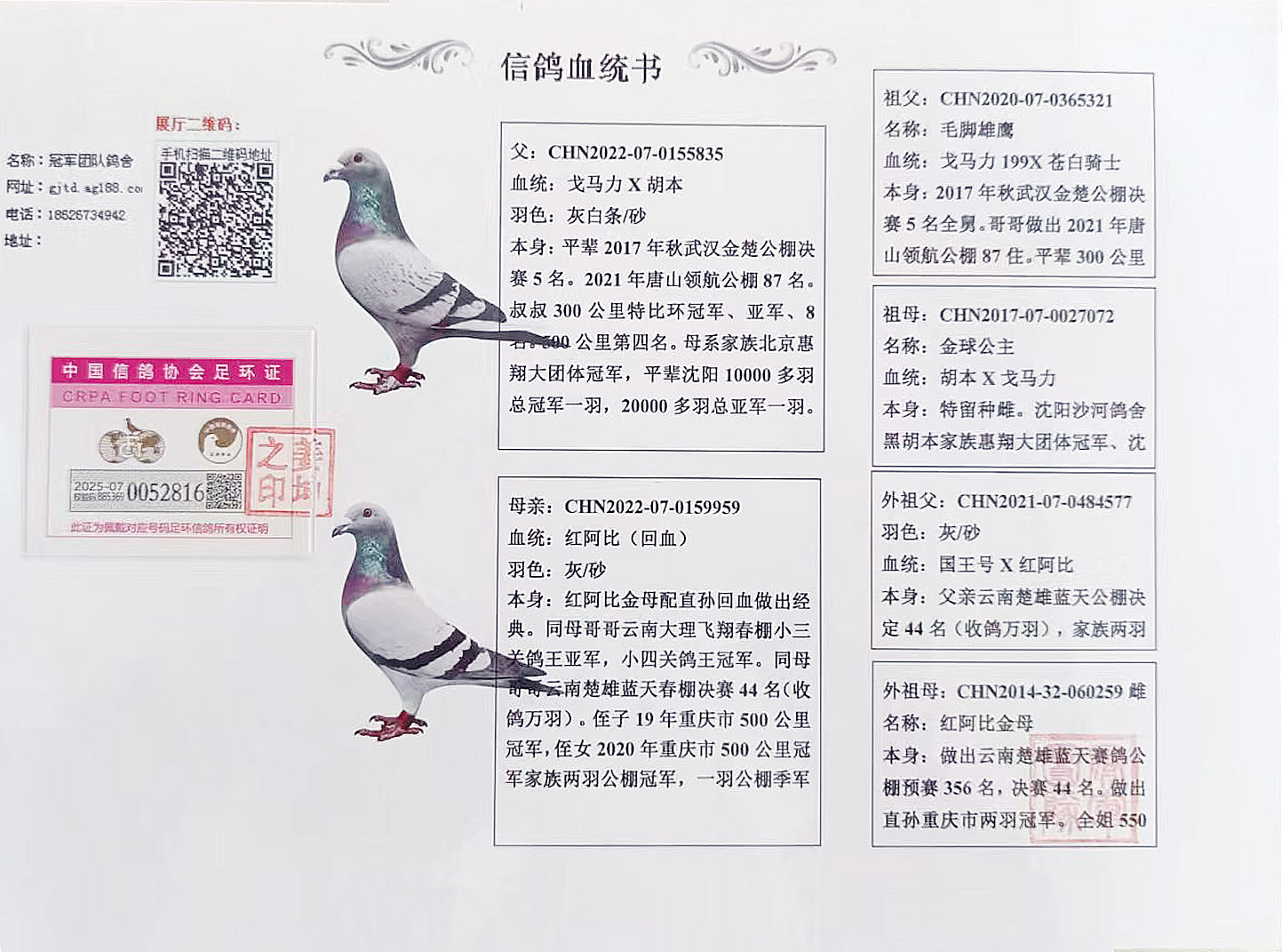 血统书足环卡随鸽发出,低价位高品质幼鸽,种赛皆宜。良心做人,所有成绩血统假一赔百,不做虚假宣传!当暧赘氪菩塾啥嗄昃楹屯雅卸辖龉┎慰迹�