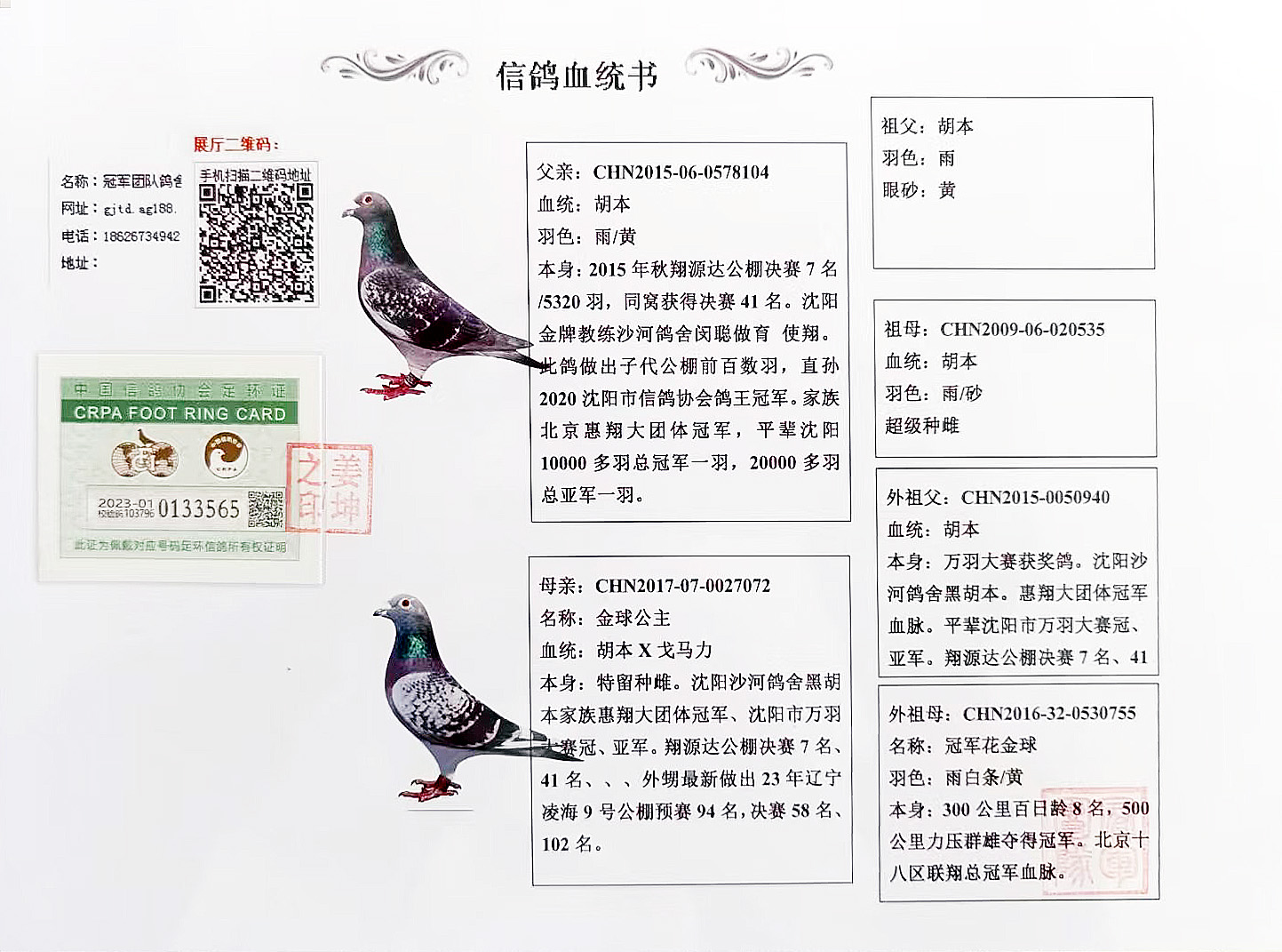 血统书足环卡随鸽发出,低价位高品质幼鸽,种赛皆宜。良心做人,所有成绩血统假一赔百,不做虚假宣传!当暧赘氪菩塾啥嗄昃楹屯雅卸辖龉┎慰迹�