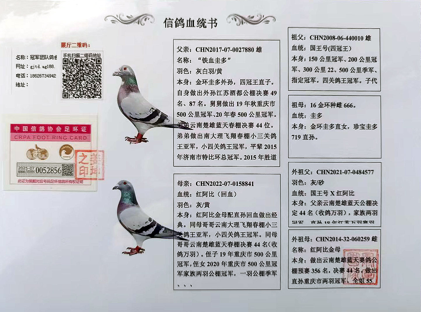 血统书足环卡随鸽发出,低价位高品质幼鸽,种赛皆宜。良心做人,所有成绩血统假一赔百,不做虚假宣传!当暧赘氪菩塾啥嗄昃楹屯雅卸辖龉┎慰迹�
