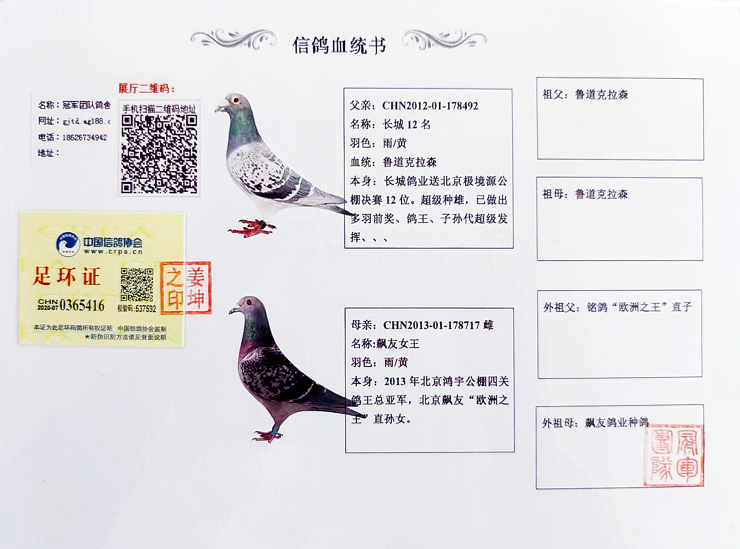 血统书足环卡随鸽发出,低价位高品质幼鸽,种赛皆宜。良心做人,所有成绩血统假一赔百,不做虚假宣传!当暧赘氪菩塾啥嗄昃楹屯雅卸辖龉┎慰迹�