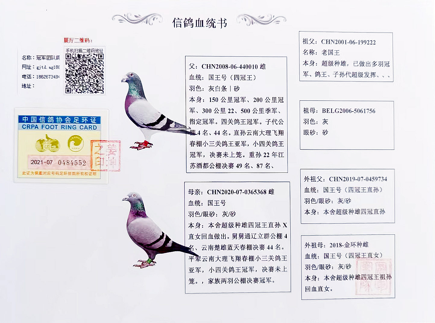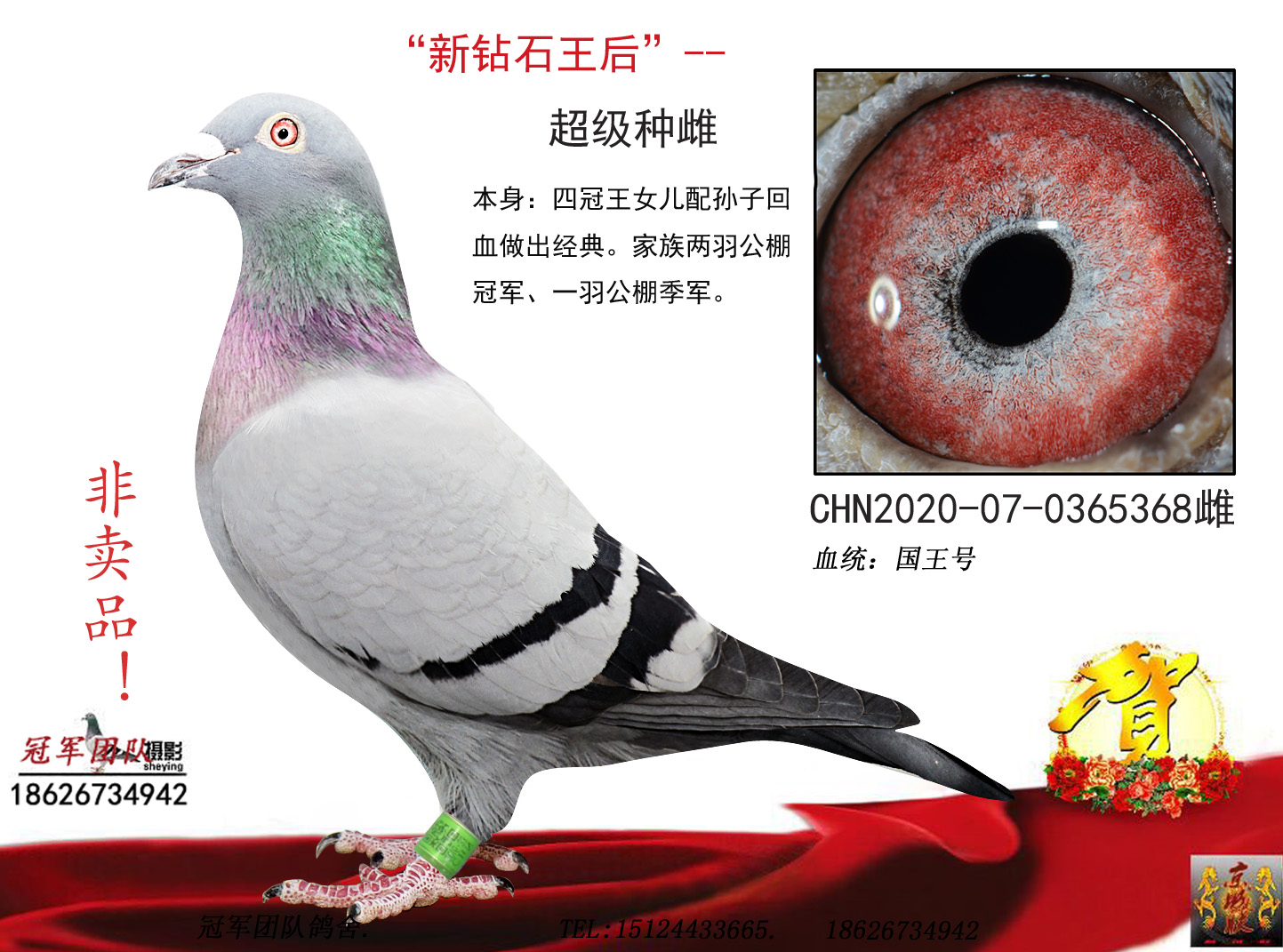 空间有限0元分享,假一赔百,拒卖百家鸽。机不可失。成绩、血统永久保真。血统书足环卡随鸽发出。
