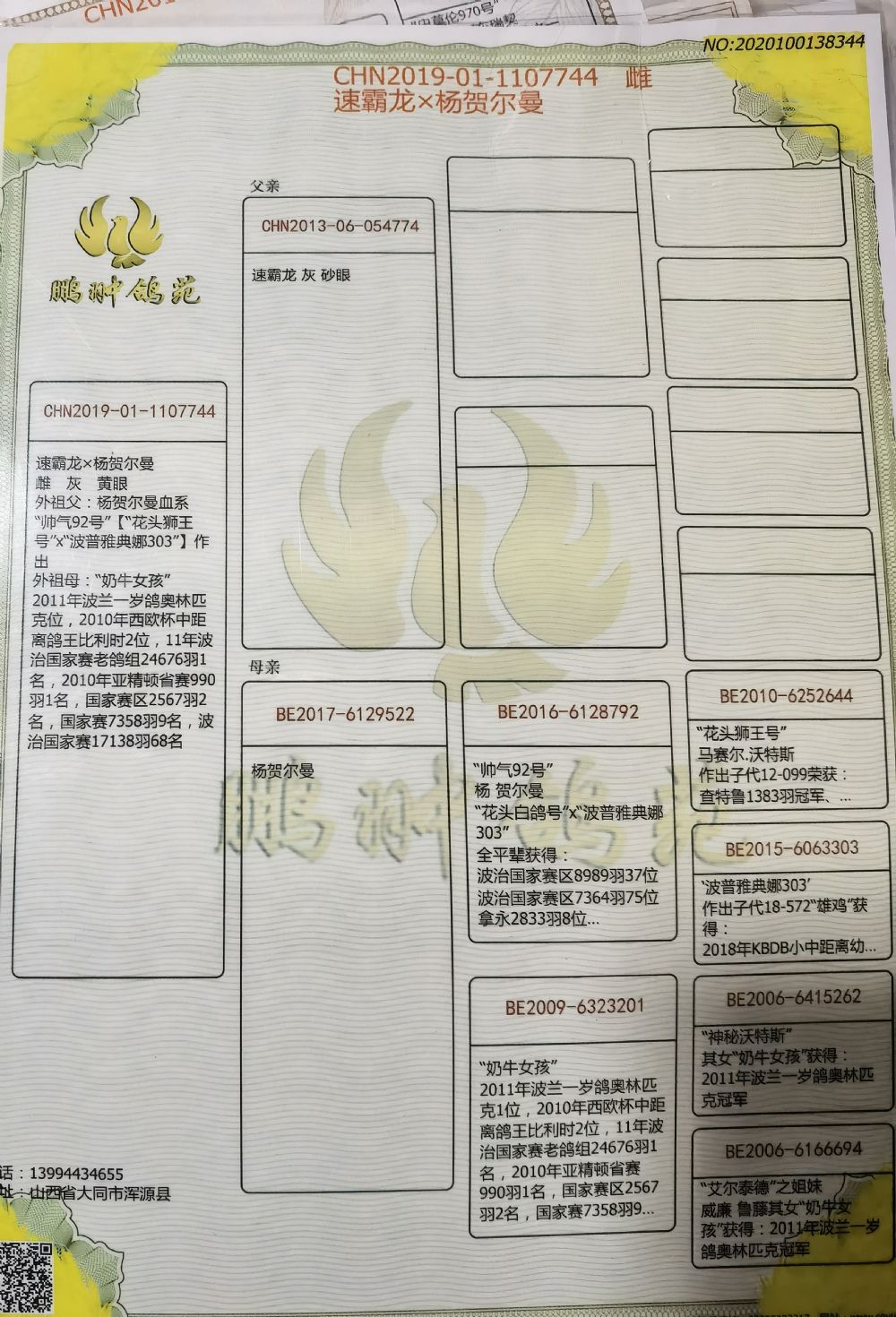 1608135 山西鹏翀鸽苑 奶酪X利奥 ¥0元 0次