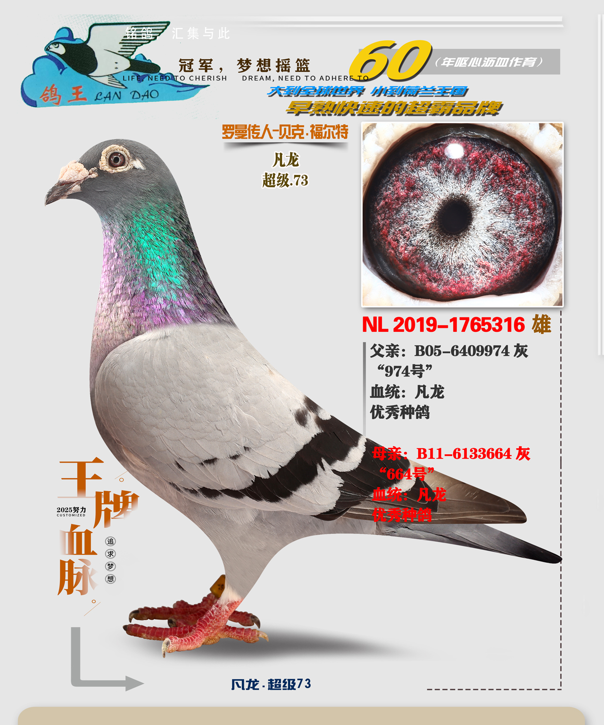 刘总你好!给报喜,我引进你的2016-32-0014055灰雄盖比闪电号近亲。它的直子2020-01-0840803灰。在2020年秋北京国信达公棚获得300公里冠军,500公里20名,双关鸽王,三关鸽王!通指。感谢您的支持!感谢您的优秀种鸽。