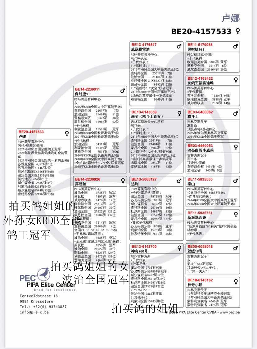同母半姐神奇700做出波治全国冠军露易丝,露易丝做出KBDB全能鸽王冠军卢娜!