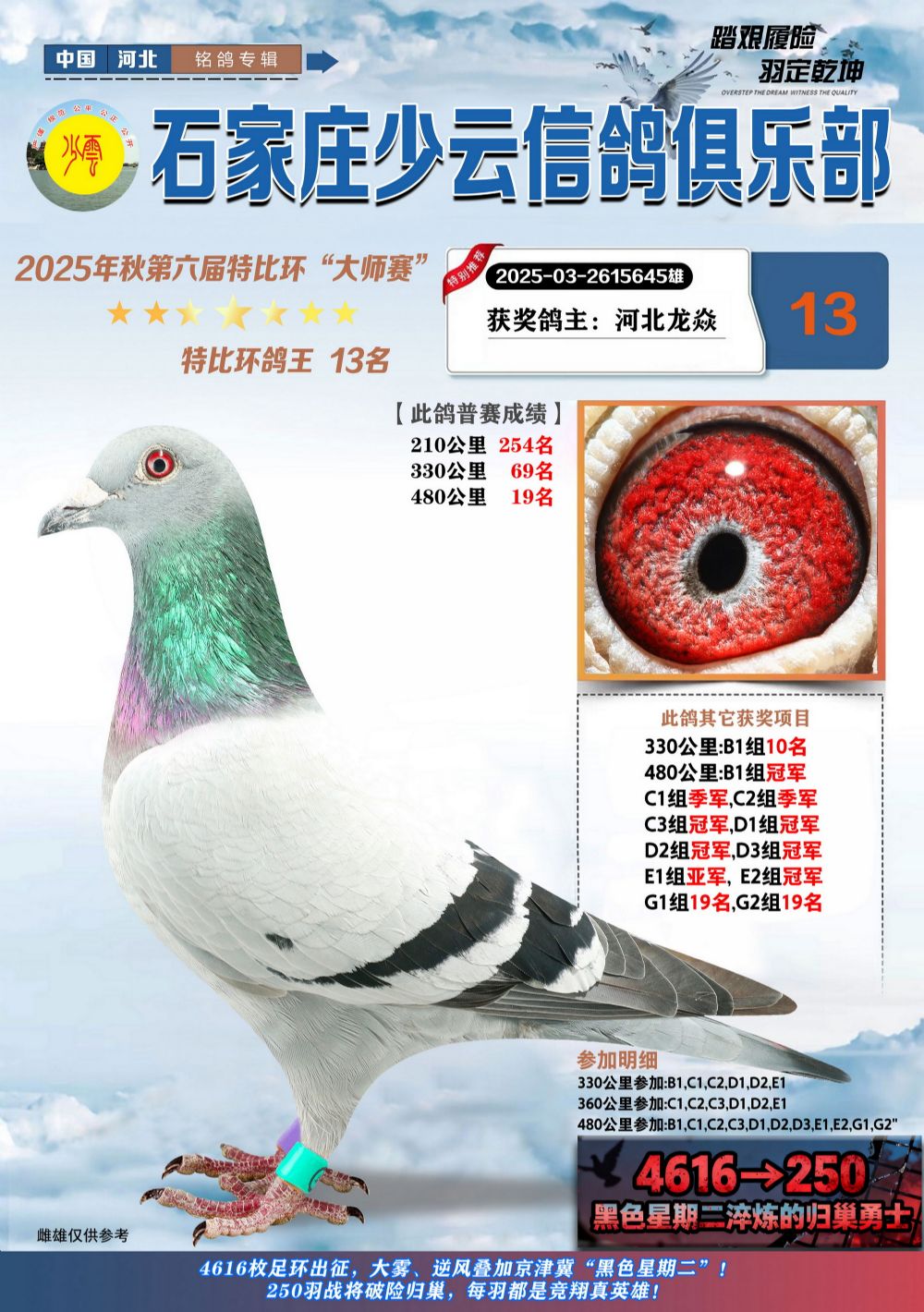 | 1608240 | 石家庄少云特比鸽王15名 | ¥200元 | 1次 |