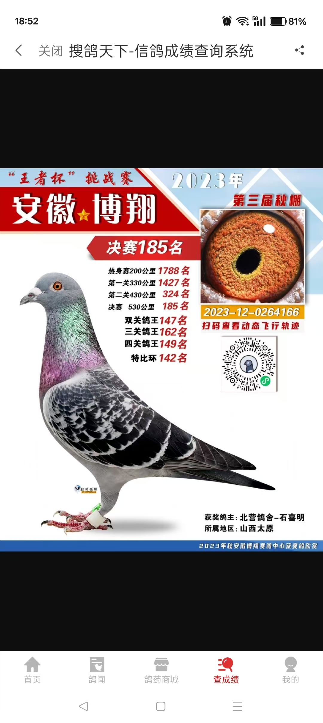 - 当前查看拍卖鸽:安徽博翔公棚决赛185名黑金奶酪