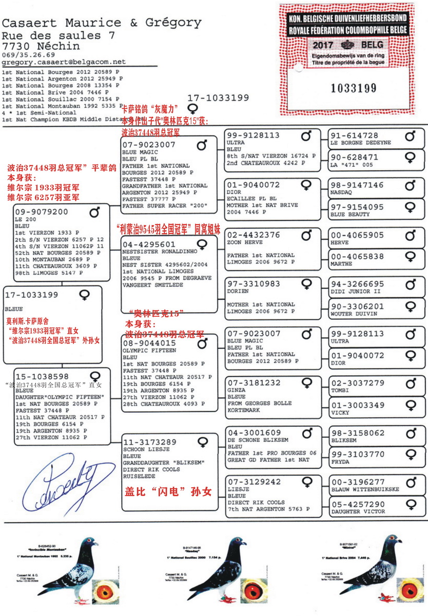 比利时波治成鸽20589羽全国冠军,37448羽总冠军