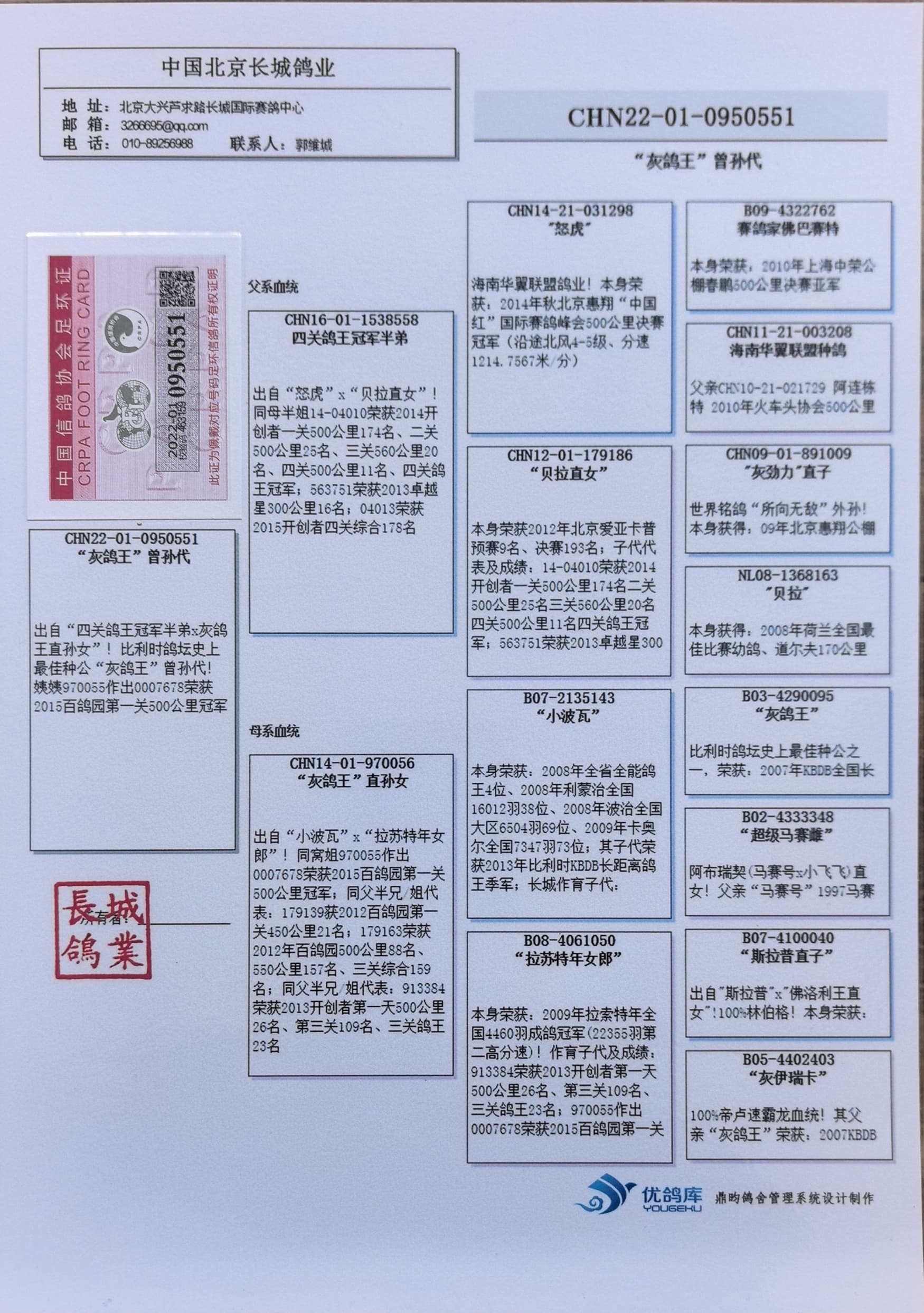 | 1610844 | 恐怖種鴿15x血系本身荣获三关亚军 | ¥200元 | 1次 |