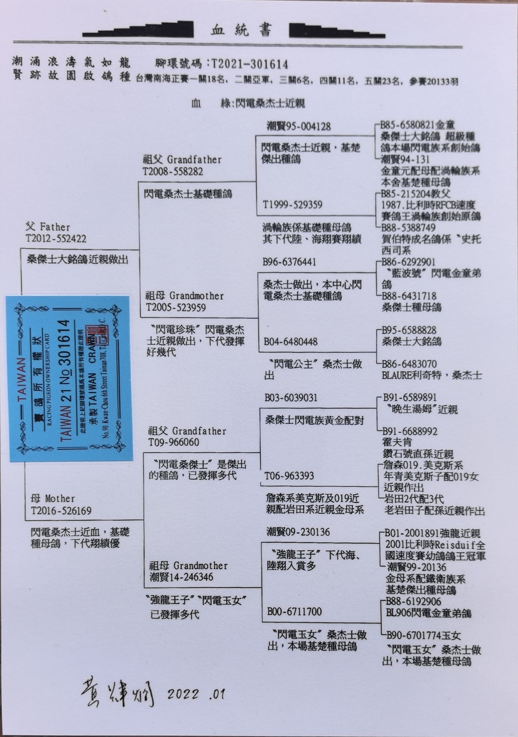 | 1610847 | 台湾飛事連竟翔詹森血系 | ¥200元 | 1次 |