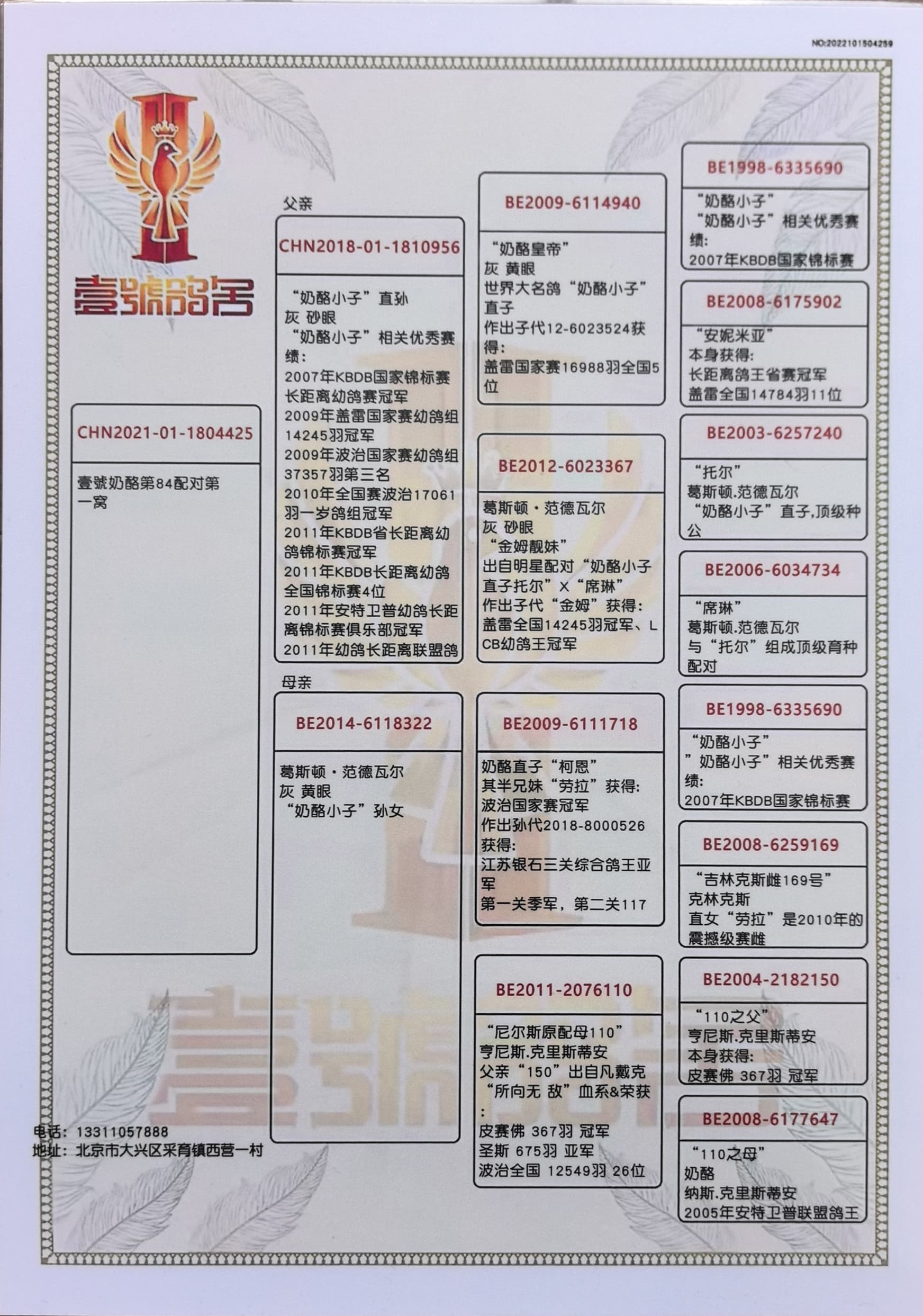 - 当前查看拍卖鸽:北京壹号鸽舍作育(壹號奶酪第84配对第一