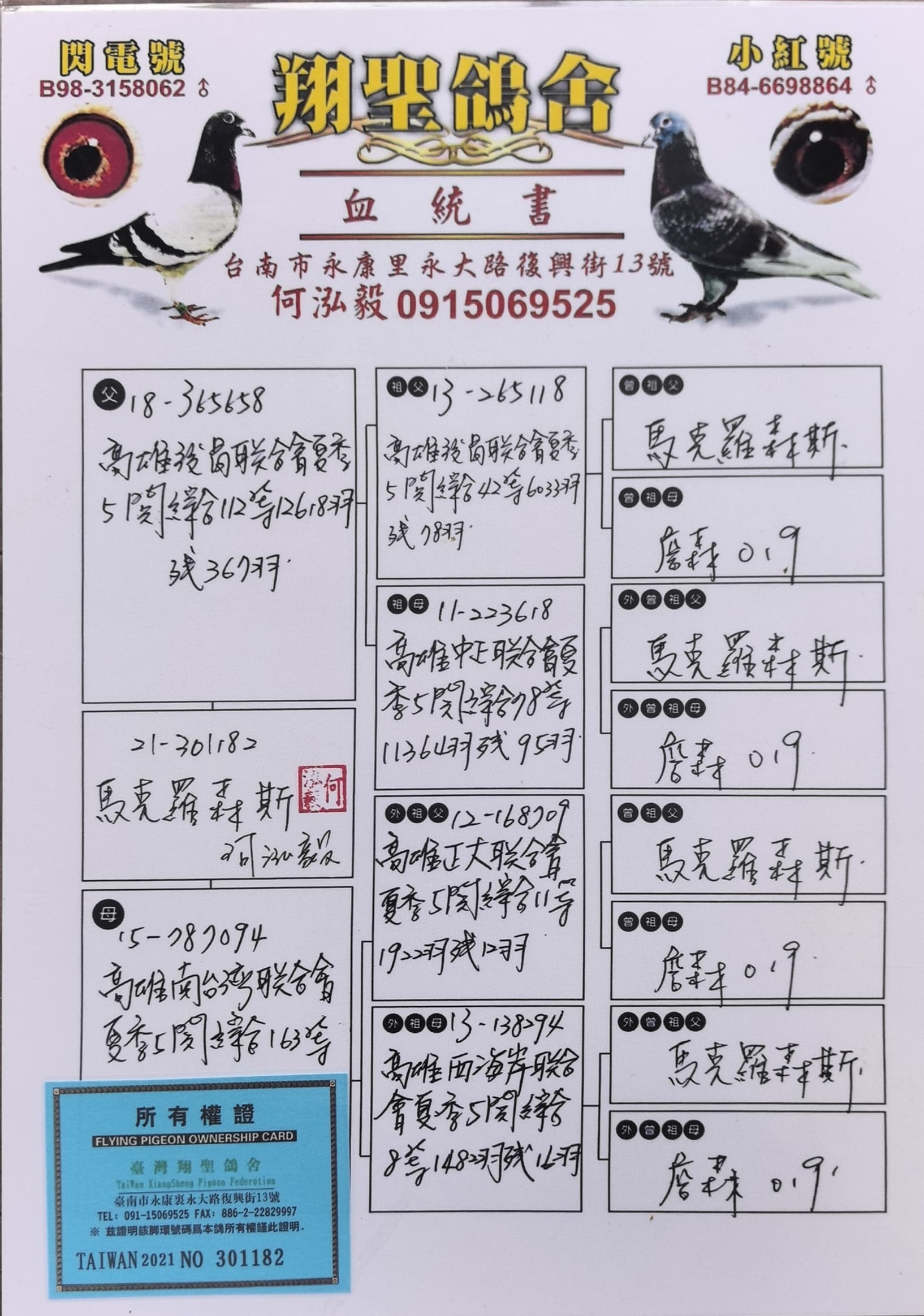 | 1610847 | 台湾飛事連竟翔詹森血系 | ¥200元 | 1次 |