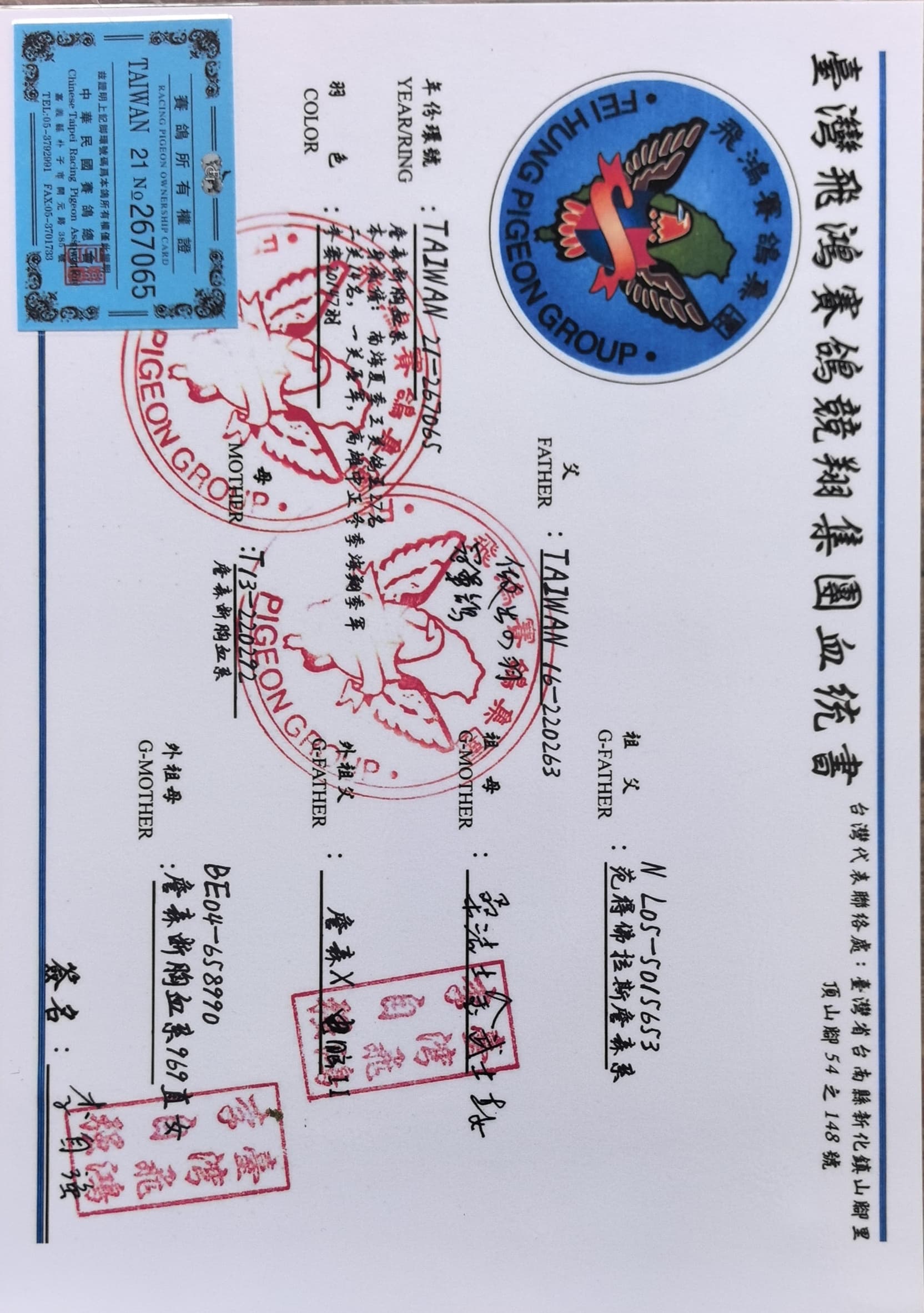 | 1610875 | 飛事達競翔研究中心 詹森血系 | ¥200元 | 1次 |