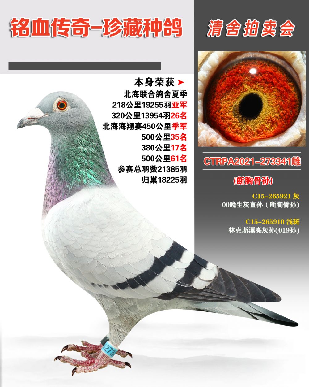 - 当前查看拍卖鸽:晚生灰直孙(断胸骨孙)×林克斯漂亮灰孙