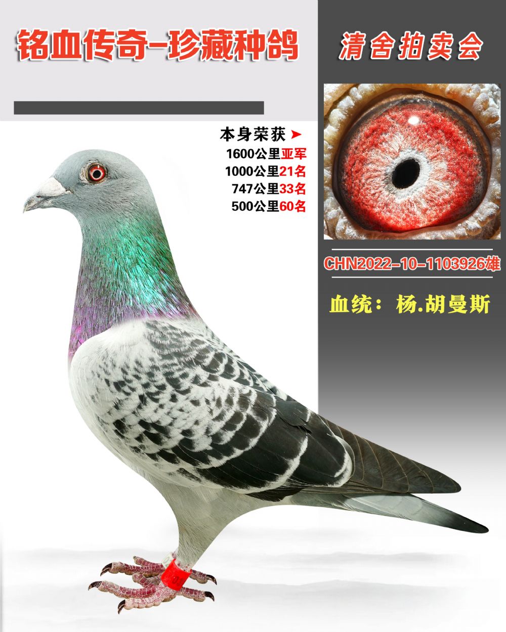 - 当前查看拍卖鸽:血统:杨·胡曼斯本身荣获1600公里亚军