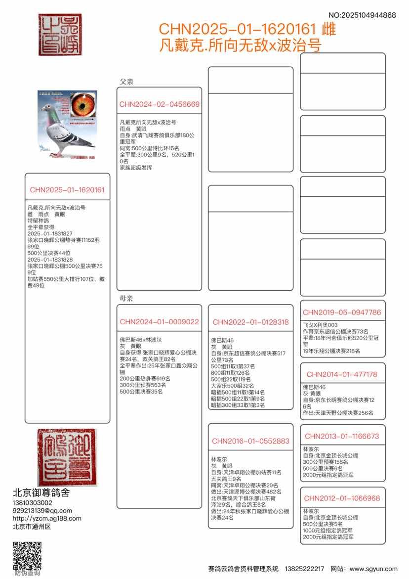 - 当前查看拍卖鸽:凡戴克所向无敌x波治号