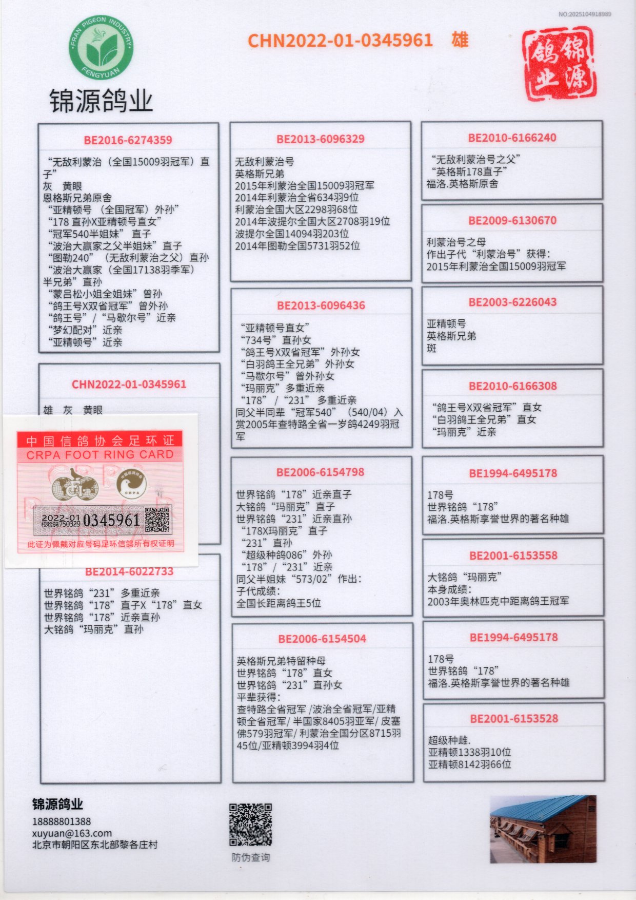 - 当前查看拍卖鸽:无敌利蒙治直孙22-0345961雄