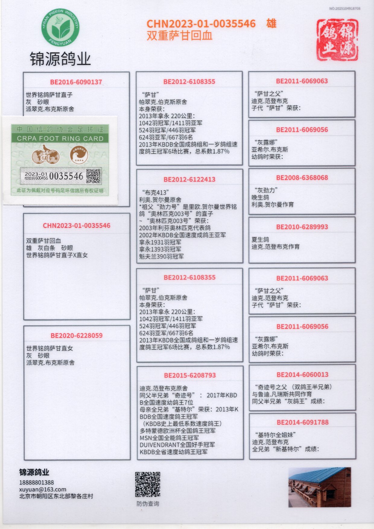 - 当前查看拍卖鸽:双重萨甘23-0035546雄