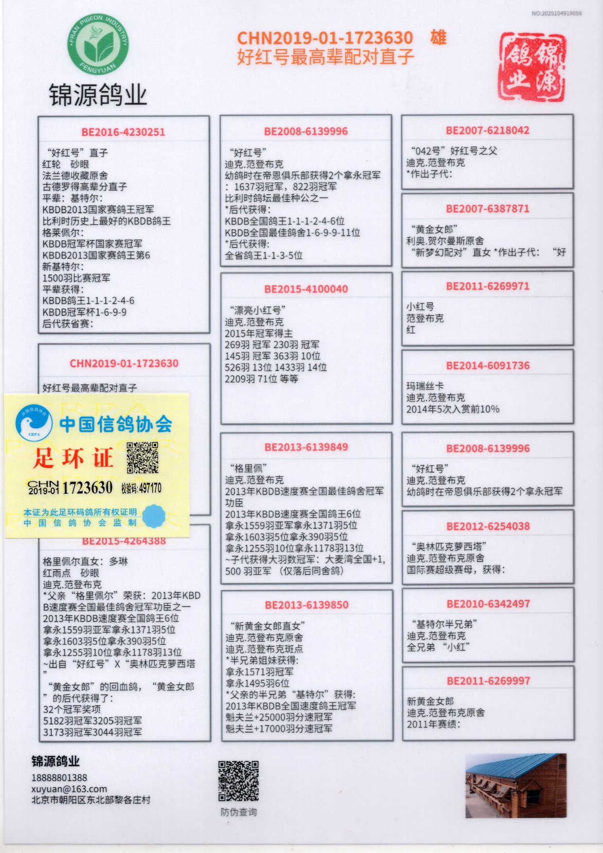 - 当前查看拍卖鸽:好红号直孙19-1723630雄