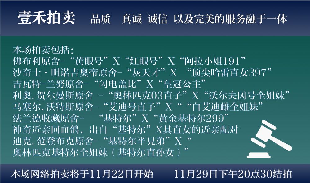 注:所有拍卖鸽,老鸽+1岁鸽,均保证收到货后30天内作育正常。