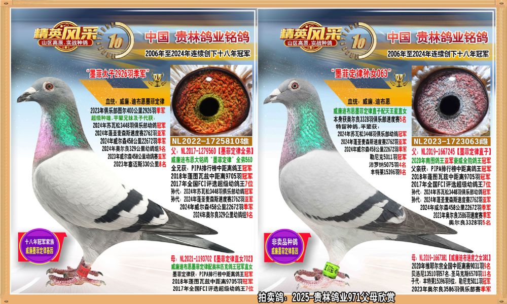 | 1612431 | 1300万阿曼多直子配阿曼多直女近亲种鸽.平辈作出冠亚军多羽 | ¥1000元 | 0次 |