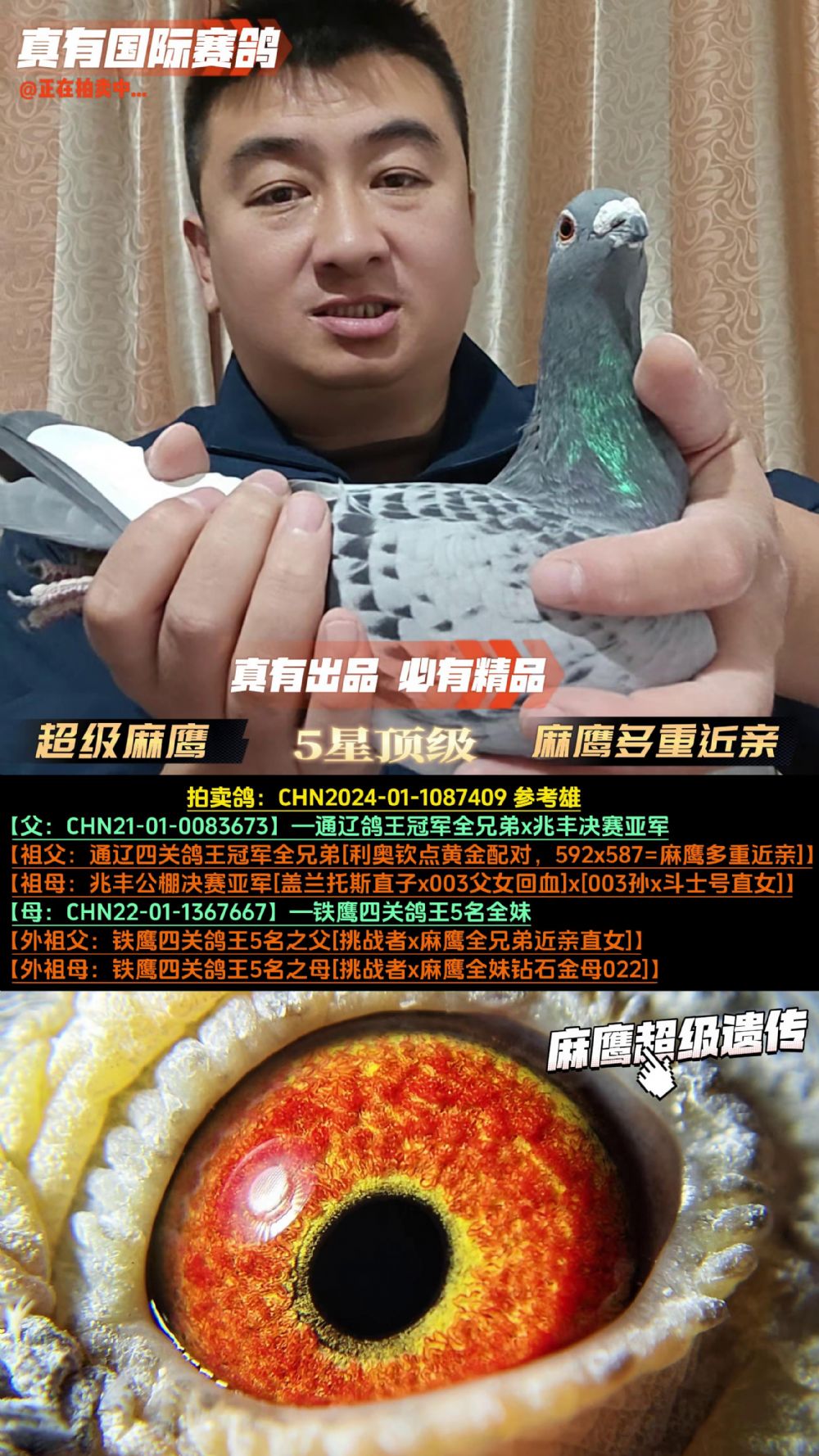 - 当前查看拍卖鸽:《超级麻鹰》麻鹰多重近亲回血