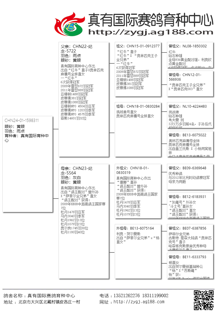 【在这三座金矿还未被世人发现之前,真有国际就第一时间把高品质的鸽子带到了国内,取得了空前的发挥。近几年大家才逐渐认识这几位大师鸽子的魅力。请记住!当任何商业鸽舍进入炒作后期的时候,他的鸽子质量与价值都会急剧下降,即便是詹森兄弟也难免于此。所以引进这家鸽舍最巅峰时期的鸽子,得以延续,才是真有国际成功的致胜法宝。】