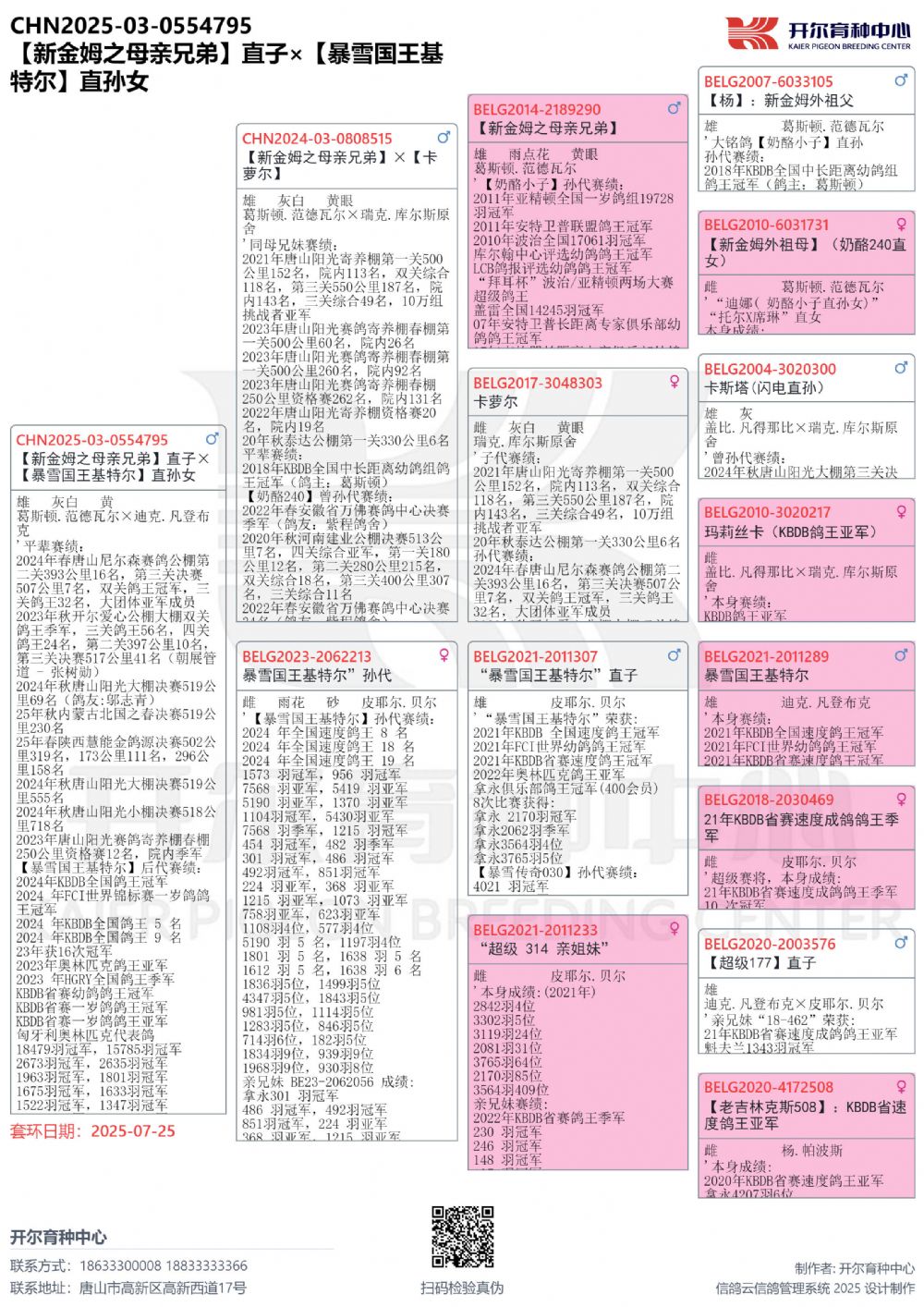 1612580 爱神王子外孙×23年开尔公棚决赛580名 ¥3500元 6次