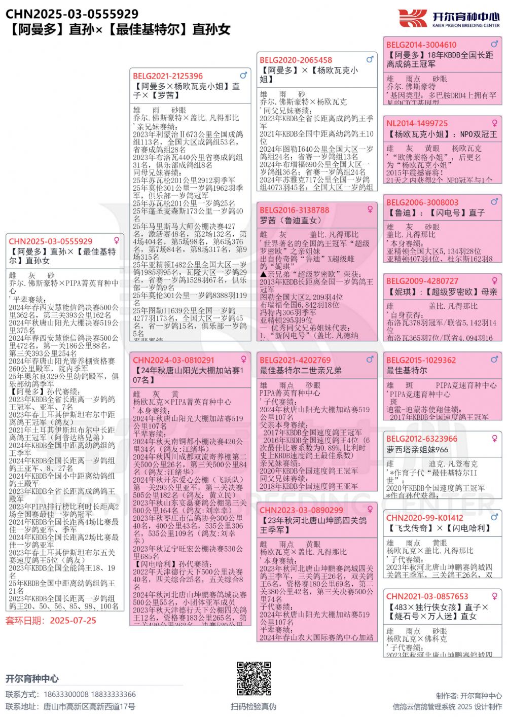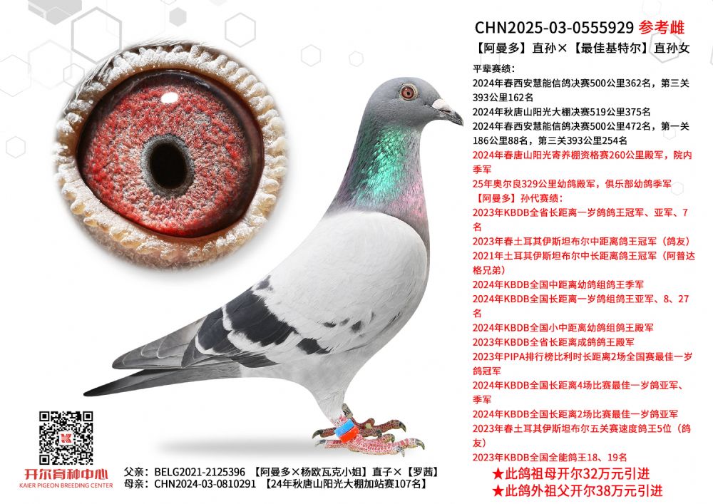 | 1612589 | 贝拉尔幼鸽王直子×开尔大棚决赛565名 | ¥10000元 | 0次 |