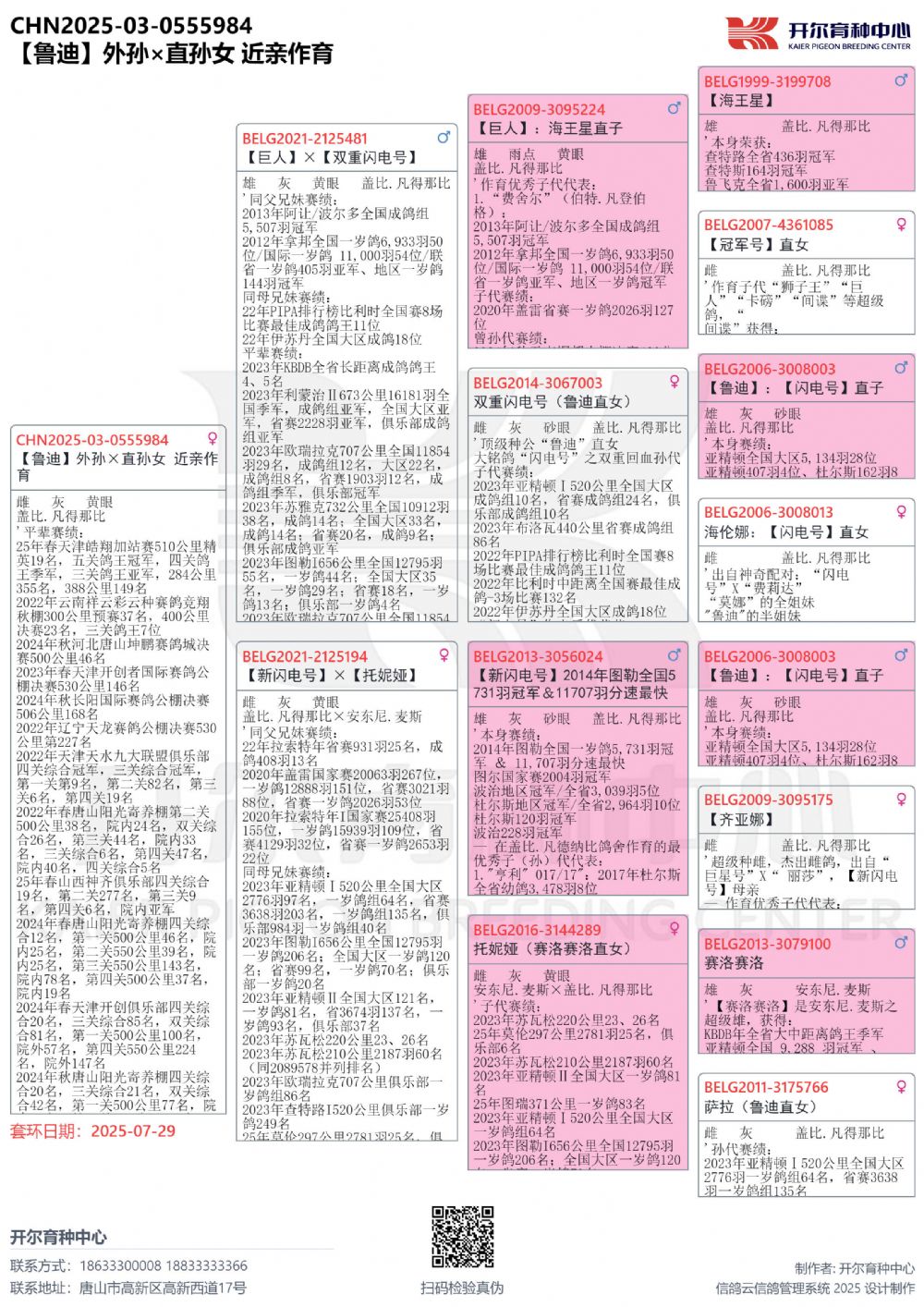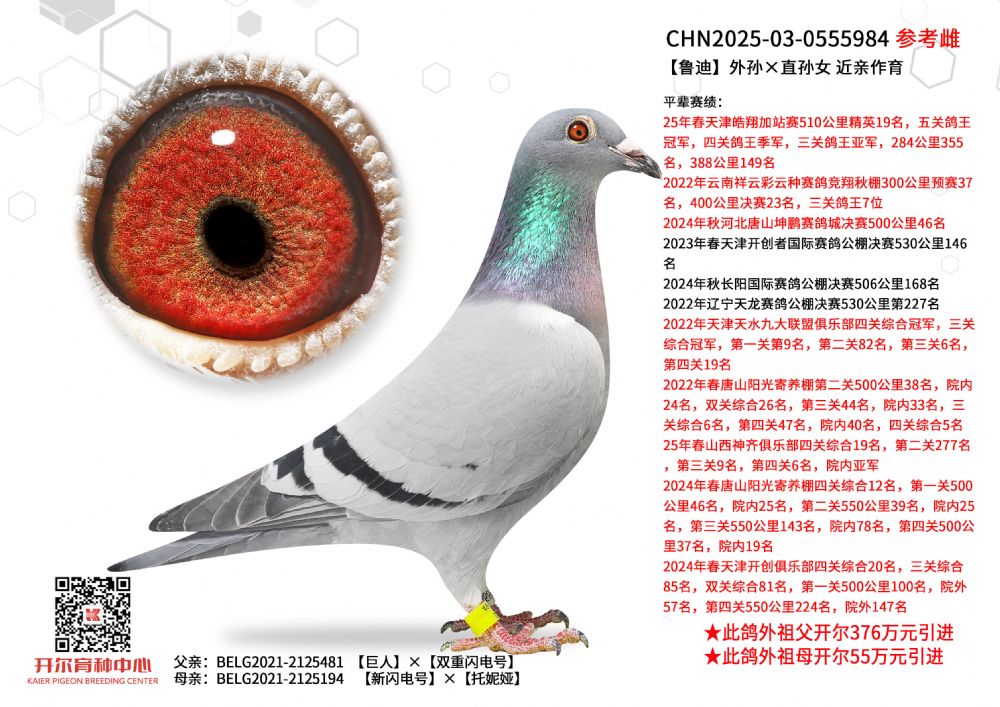 1612589 贝拉尔幼鸽王直子×开尔大棚决赛565名 ¥10000元 0次