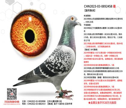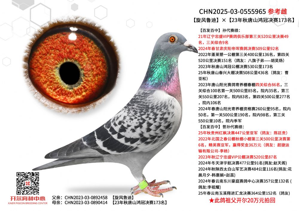 1612589 贝拉尔幼鸽王直子×开尔大棚决赛565名 ¥10000元 0次