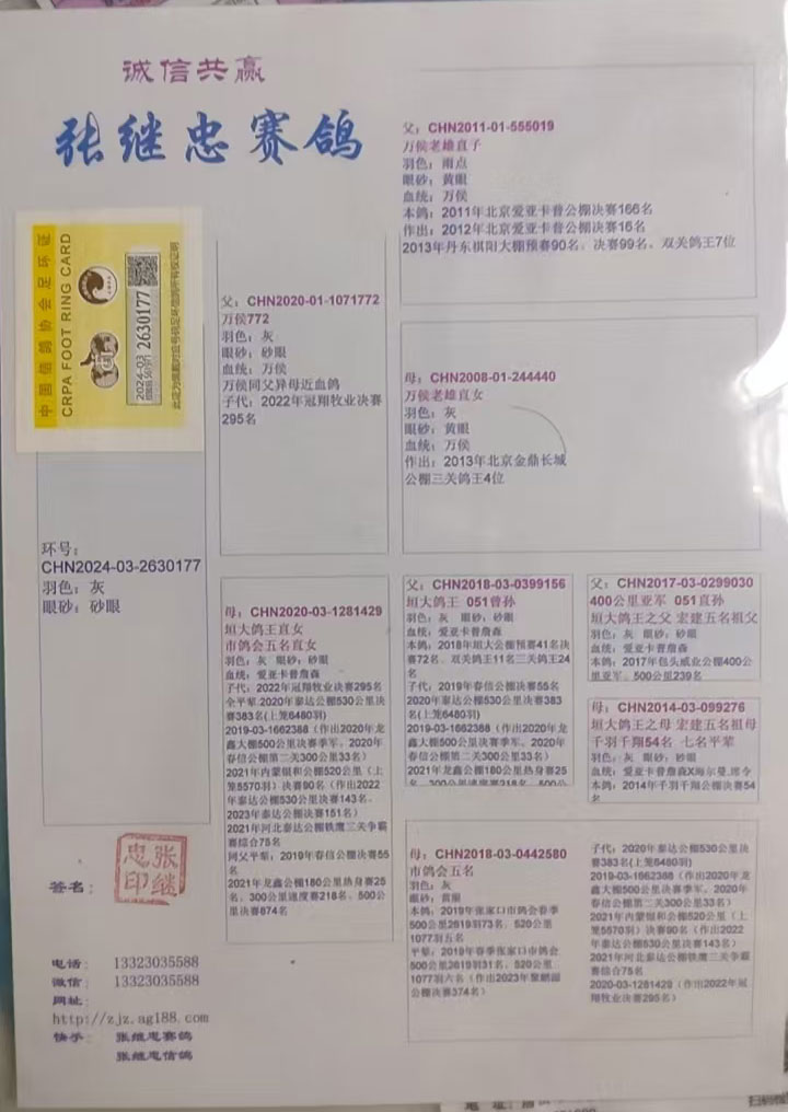 注明:5年以上的老鸽子更换环境有可能造成不能作育,请你谨慎出价