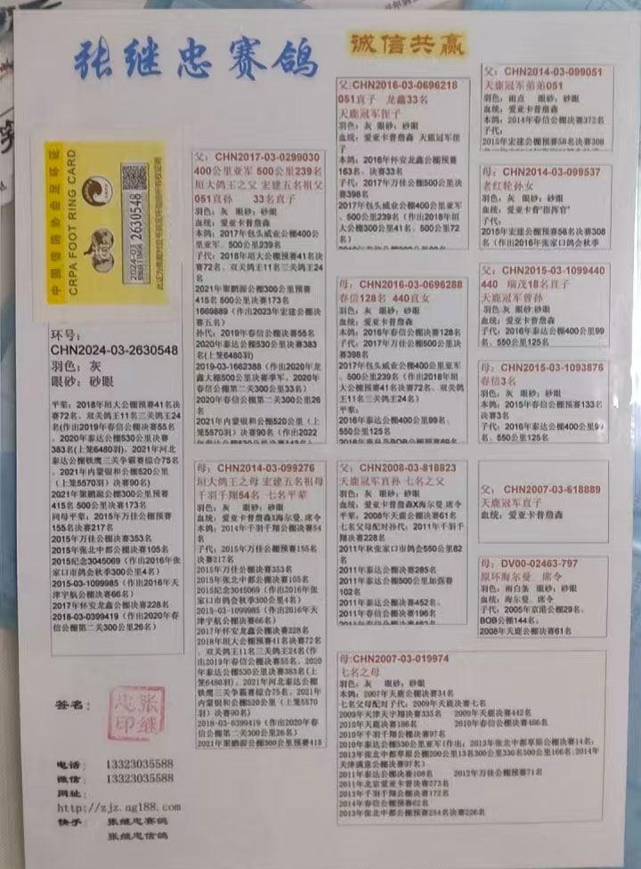 注明:5年以上的老鸽子更换环境有可能造成不能作育,请你谨慎出价